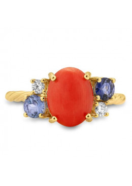 Ring - G.coral/dia. 0,11 Ct. H/si